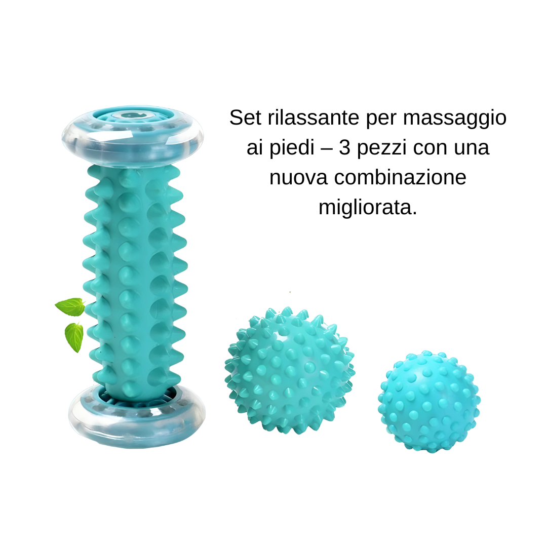 Set Completo Massaggio Piedi - rullo + 2 palline per la tua routine benessere quotidiana a casa o in ufficio.